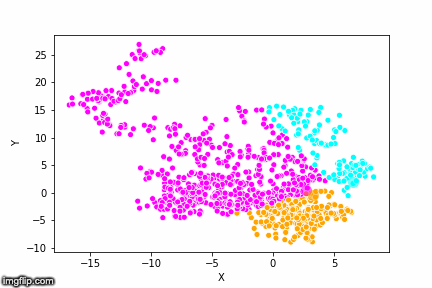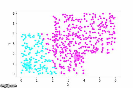 So again, the algorithm makes an initial random (blind) guess as to where the center of a cluster is. Then each point is classified according to the closest cluster center point. The centers are recomputed as the mean of the data points belonging to it’s cluster, and the process is repeated. Once the algorithm has converged and no updates are made to the clusters the algorithm is finished.